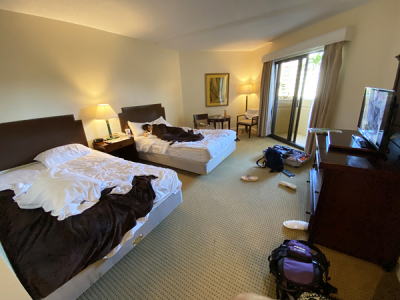 飛行機の中で感じた寒気が成田のホテルに着くと一気に爆発。 体がだるい、頭が痛い、寒気も、、、、、ヤバい! |