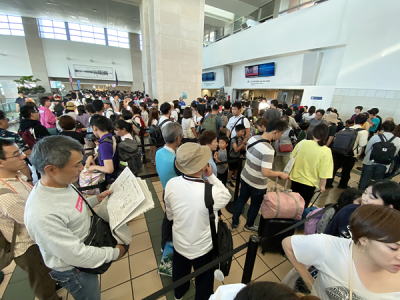 出発2時間半前に空港着、楽勝のはずが大混雑でチェックインするだけになんと1時間!